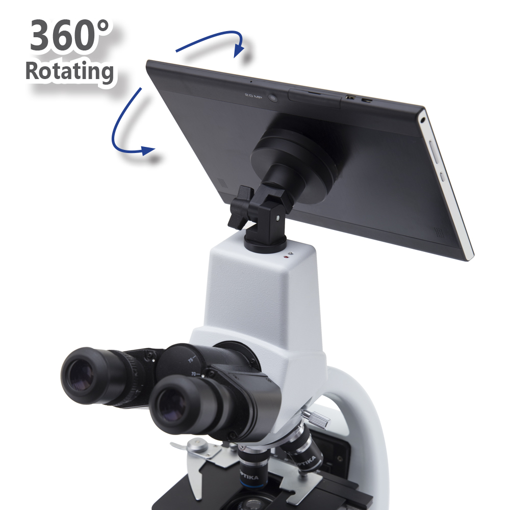 Head: Binocular, 360° rotating and 30° inclined. Inter-pupillary distance from 48 to 75 mm; dioptric adjustment on left eyepiece. Built-in 3.1 MP camera.